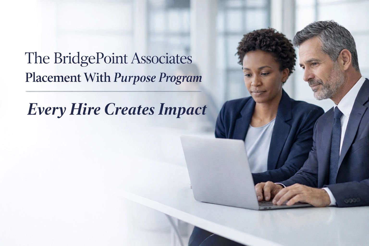 BridgePoint Associates connects exceptional talent with mission-driven organizations. Through our Placement With Purpose Program, a portion of every successful placement fee is donated to a nonprofit selected by our clients.